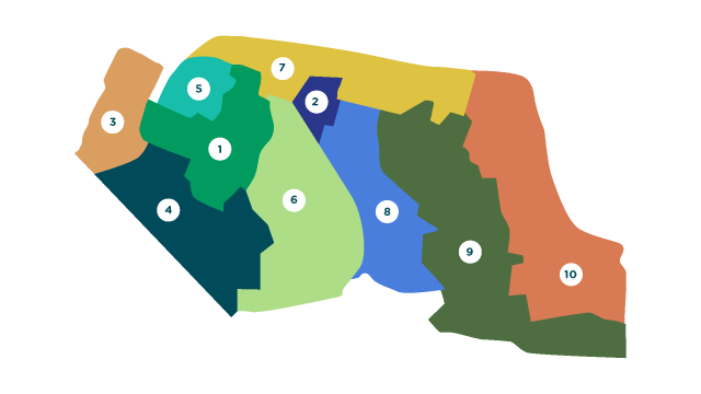 | 4 - " Ville-Parc " | 9 - Quartier maraîcher |