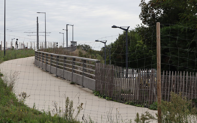 Deux rampes d'accès à la station de tram Ausone ont également été réalisé : du côté de la rue Beyerman, la rampe est réservée aux mobilités douces uniquement ; tandis que du côté de l'avenue d'Aquitaine, le remblais qui s'élève désormais entre le rond-point de l'escargot et la station de tram sera une des portions routières de la liaison Centre-ville/Le Tasta.