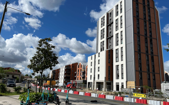 - Ilot 5 : Cette ancienne friche accueille 370 logements dont une résidence étudiante au débouché du parvis du tramway autour d’un parc public arboré de la taille de deux terrains de football. Le programme, conçu par Studio Bellecour (architectes), est porté par Pitch (promoteur) et Mésolia (bailleur). Les premiers bâtiments Pitch ont été livrés en fin d’année 2024/début d’année 2025. Les logements Mésolia sont prévus courant 2025 et la résidence étudiante pour l'automne 2025. Les pieds d’immeubles côté avenue Charles de Gaulle proposent des cellules commerciales dont la boucherie Rouge Tendre, la boulangerie-pâtisserie Châteauneuf du Pain, l'épicerie/primeur/fromagerie/caviste Le panier sourire qui ont ouvert le 16 septembre 2025. Ils rejoignent le cuisiniste Kény, commerce historique du quartier qui a intégré ses nouveaux locaux.
