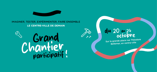 Accompagnés par le collectif CANCAN, spécialiste de l’urbanisme transitoire, les habitants et usagers du centre-ville sont invités à participer au Grand Chantier du 20 au 24 octobre 2025, pour aider à fabriquer de nouveaux mobiliers préfiguratifs et temporaires, et donner un avant-goût de ce que sera le centre-ville de demain.