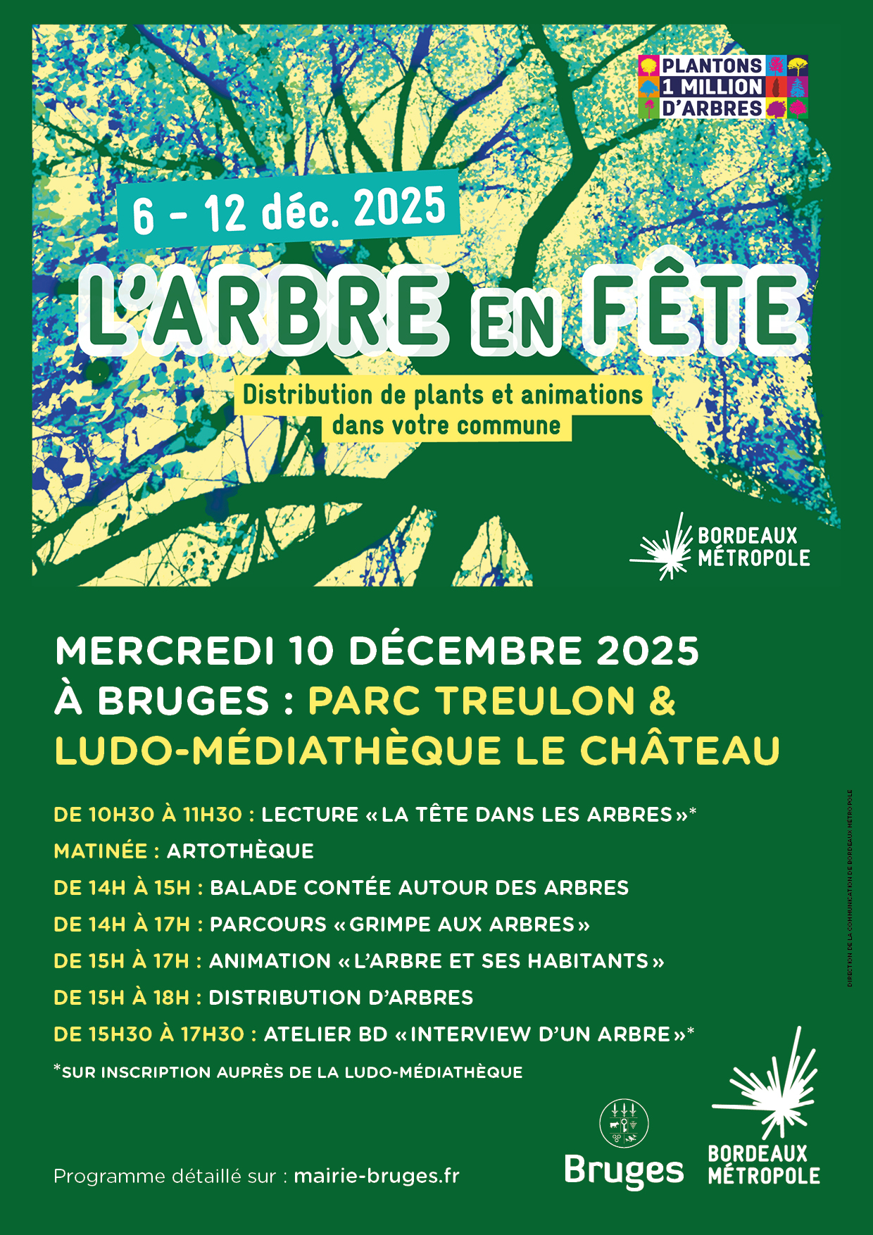 Dans le cadre de l'événement métropolitain L'Arbre en fête, la ville de Bruges organise un temps fort à Treulon - dans le parc et à la ludo-médiathèque Le Château - le mercredi 10 décembre 2025.