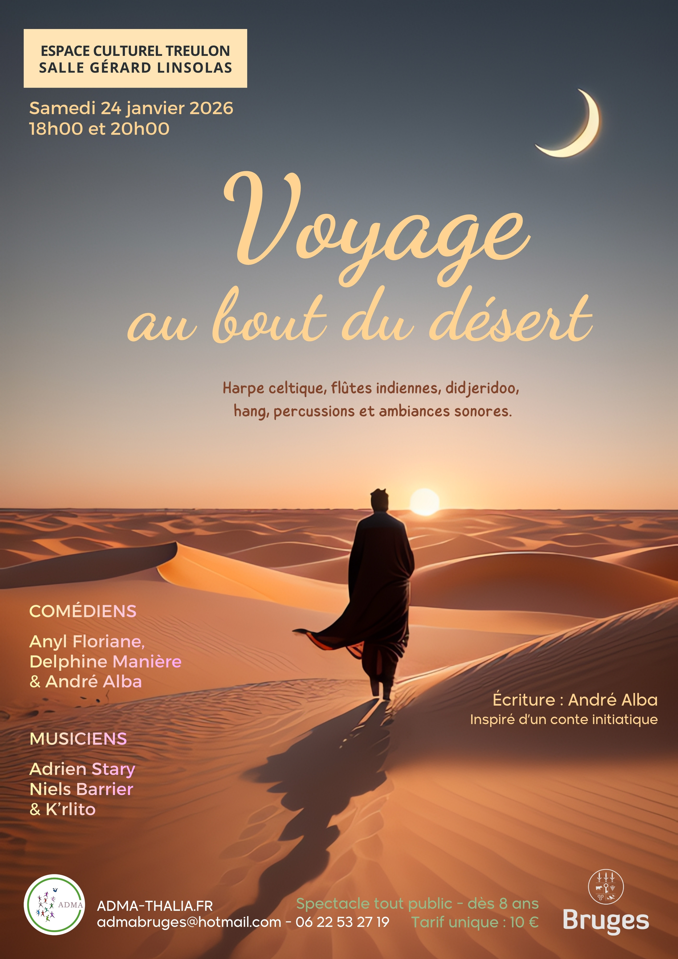 "Après sa création musicale Réminiscence, présentée à Bruges en mars 2024, Adrien Stary revient pour ADMA entouré d’une nouvelle équipe de musiciens. Ensemble, ils nous invitent à suivre le chemin d'un voyage initiatique qui le plus souvent nous ramène à nous-mêmes. L’écriture d’André Alba trouve ici pleinement sa part de poésie et la voix d’Anyl Floriane, narratrice de ce conte, lui donne parfaitement sa dimension et sa résonnance."